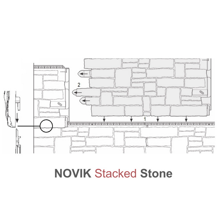 Fasádní panely NOVIK Stacked Stone se obvykle montují na předem připravený podkladní rošt s roztečí latí 20,3 cm. Více informací o montáži nalezenet v montážním návodu.