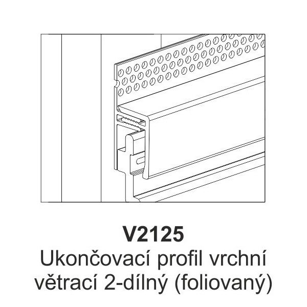 Slouží k olemování plochy a současně umožňuje odvětrání prostoru za obkladem. Montuje se horizontálně na horní okraj obkládané plochy. Dvoudílný profil sestává ze spodní části s perforací (umožňuje větrání) a horní části. Jako první se osadí a upevní vruty spodní část profilu, pak se namontují fasádní panely, a nakonec se nasadí horní část profilu, což usnadňuje montáž.
