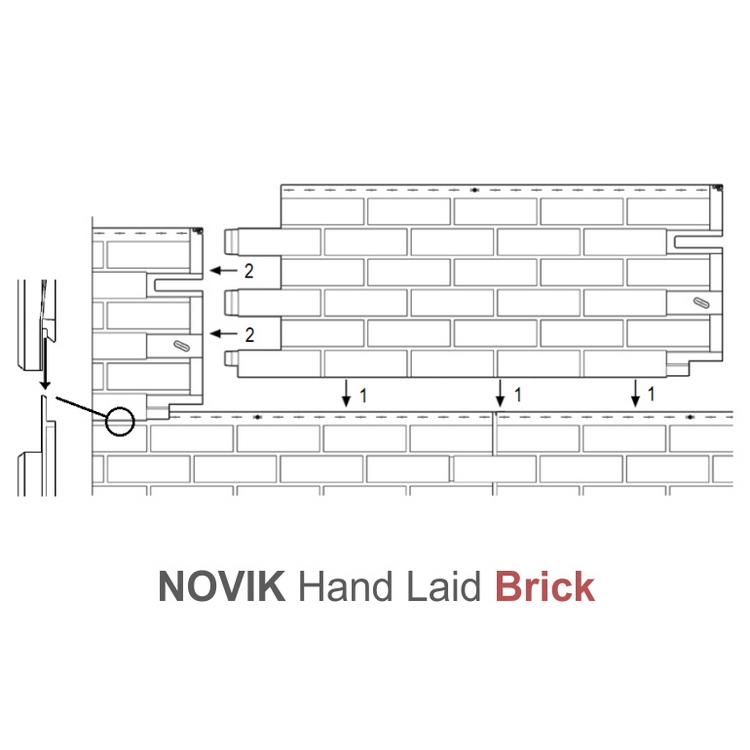 Fasádní obklad NOVIK Hand Laid Brick je moderní obklad pro lehké odvětrávané fasády. Má vzhled zdiva z lícových cihel. Hluboce strukturovaný povrch věrně napodobuje klasický podélný cihlový vzor s běhounovou vazbou. Díky realistickému provedení působí obklad jako skutečné lícové cihly, přitom však nabízí rychlou a čistou montáž – bez malty, lepidla a spárování.