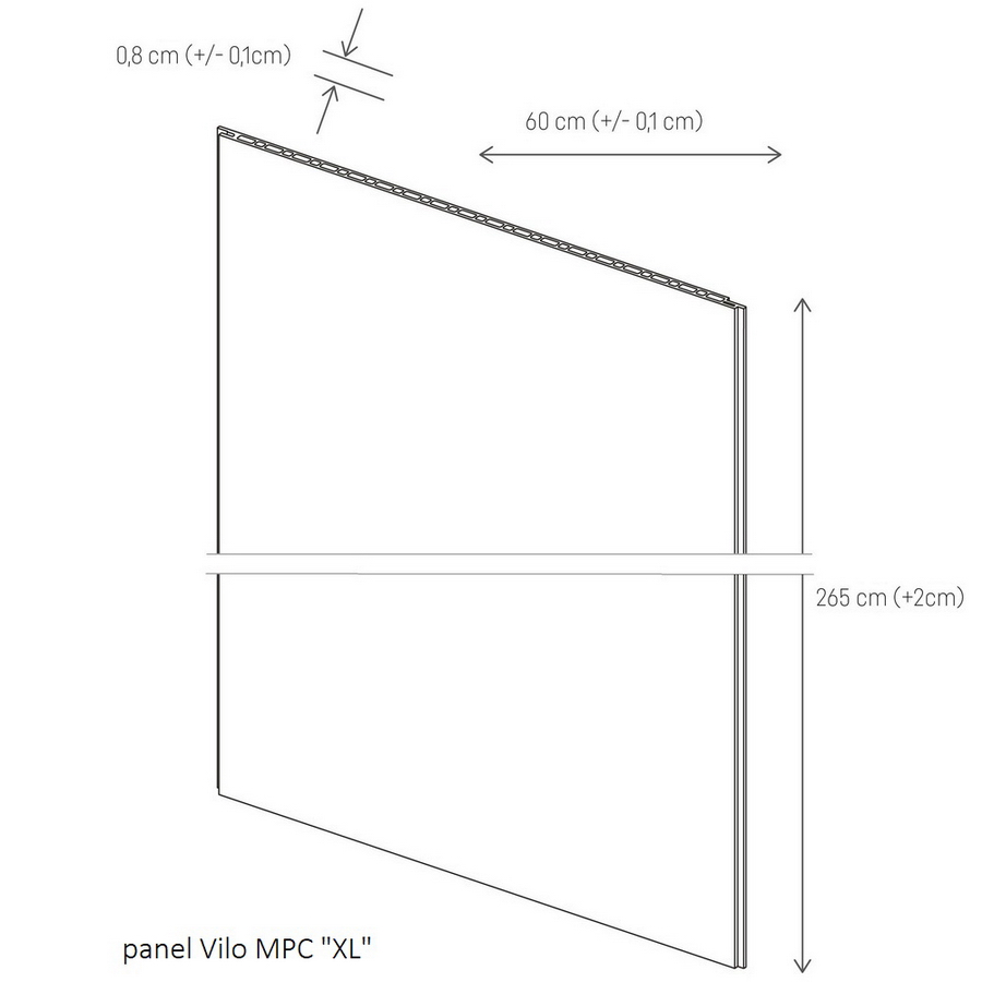 Skladebné rozměry hladkého panelu XL jsou 60 cm x 2,65 m, tloušťka panelu je 8 mm.
